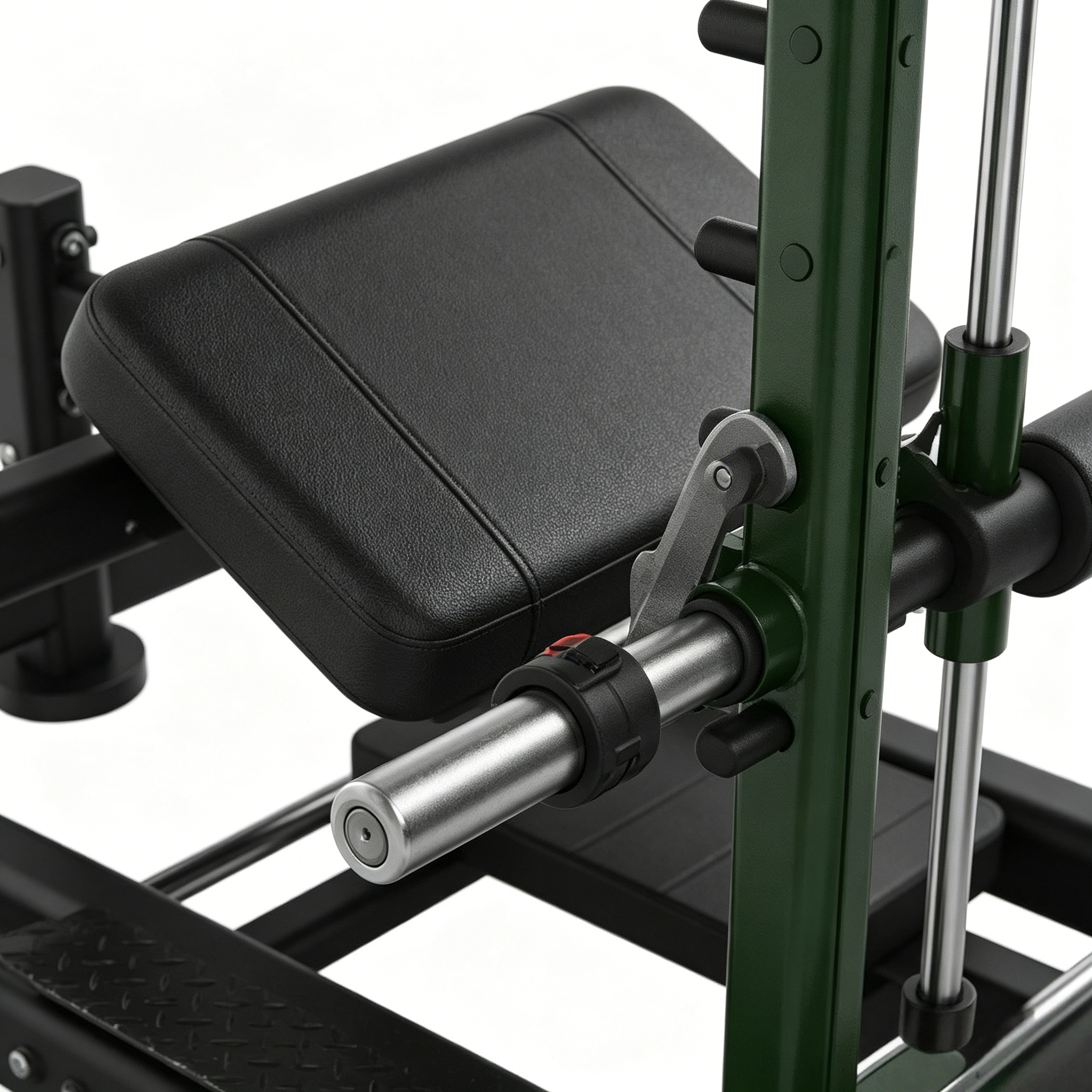 - 重型钢架和导轨:坚固的焊接钢构架和精密直线导轨确保在重负载下稳定、平滑的运动,消除摇晃,确保安全、可控的髋部推举。
