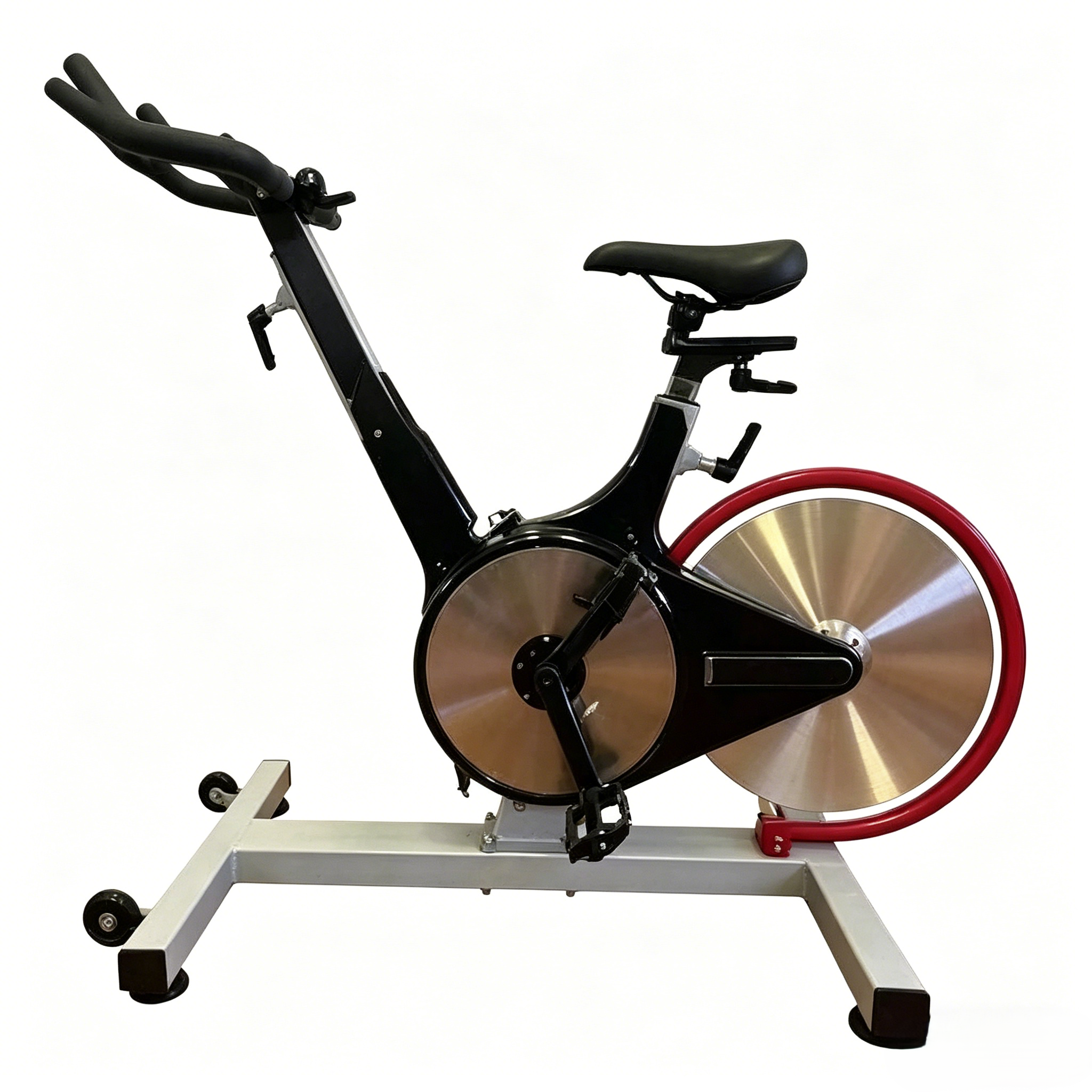 - 重型超大型飞轮: 大型抛光金属飞轮带有红色保护边缘,提供出色的动量,为高强度间歇训练(HIIT)和冲刺骑行提供平滑、稳定的踏板感觉。沉重的重量确保了在整个骑行过程中稳定的功率输出和一致的动量。