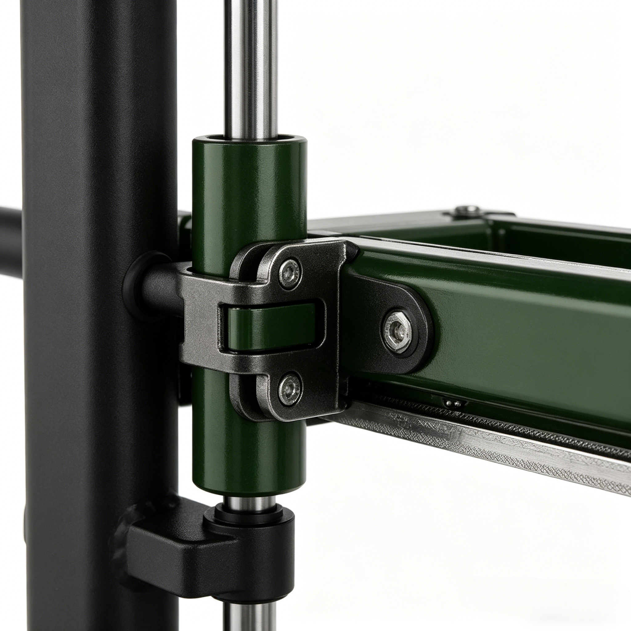 Heavy-Duty Steel Frame with Linear Guide Rails: Robust, thick-walled steel construction (Black & Green finish) paired with high-precision linear guide rails ensures stable, vibration-free movement during high-intensity glute workouts.