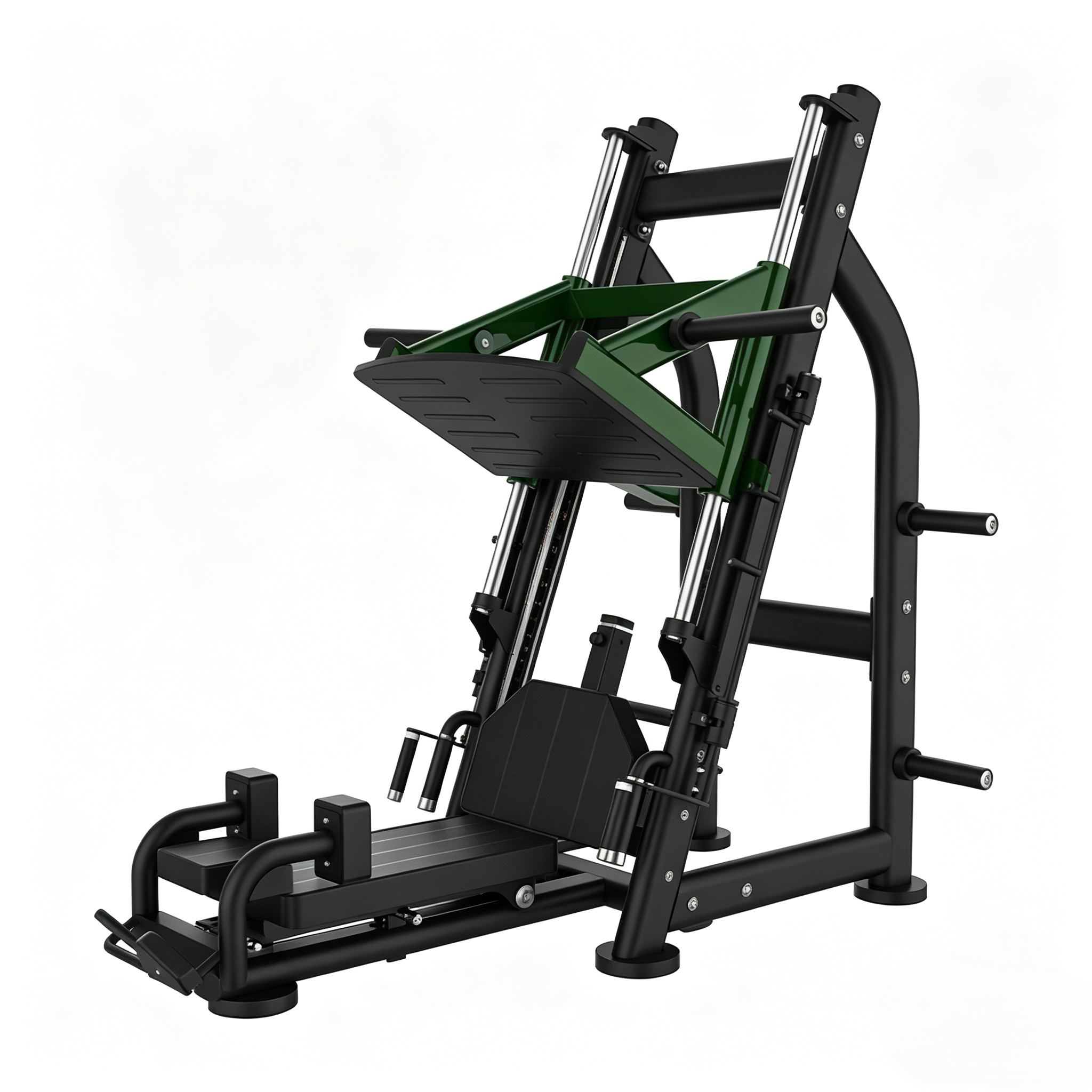 Dual-Function Training System: Integrated design supports both Vertical Leg Press (quadriceps, glutes) and 45-Degree Hack Squat (posterior chain, hamstrings, glutes) in one machine, eliminating the need for separate equipment and maximizing training space efficiency.