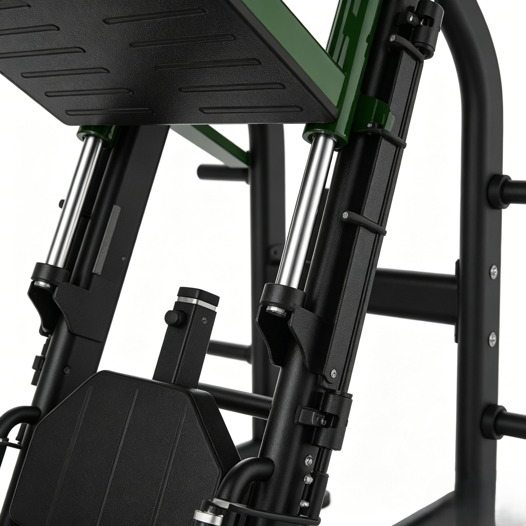 Reinforced Green Mechanics: Color-coded green pivot points and linkage hardware provide durability and easy identification for quick switching between training modes.