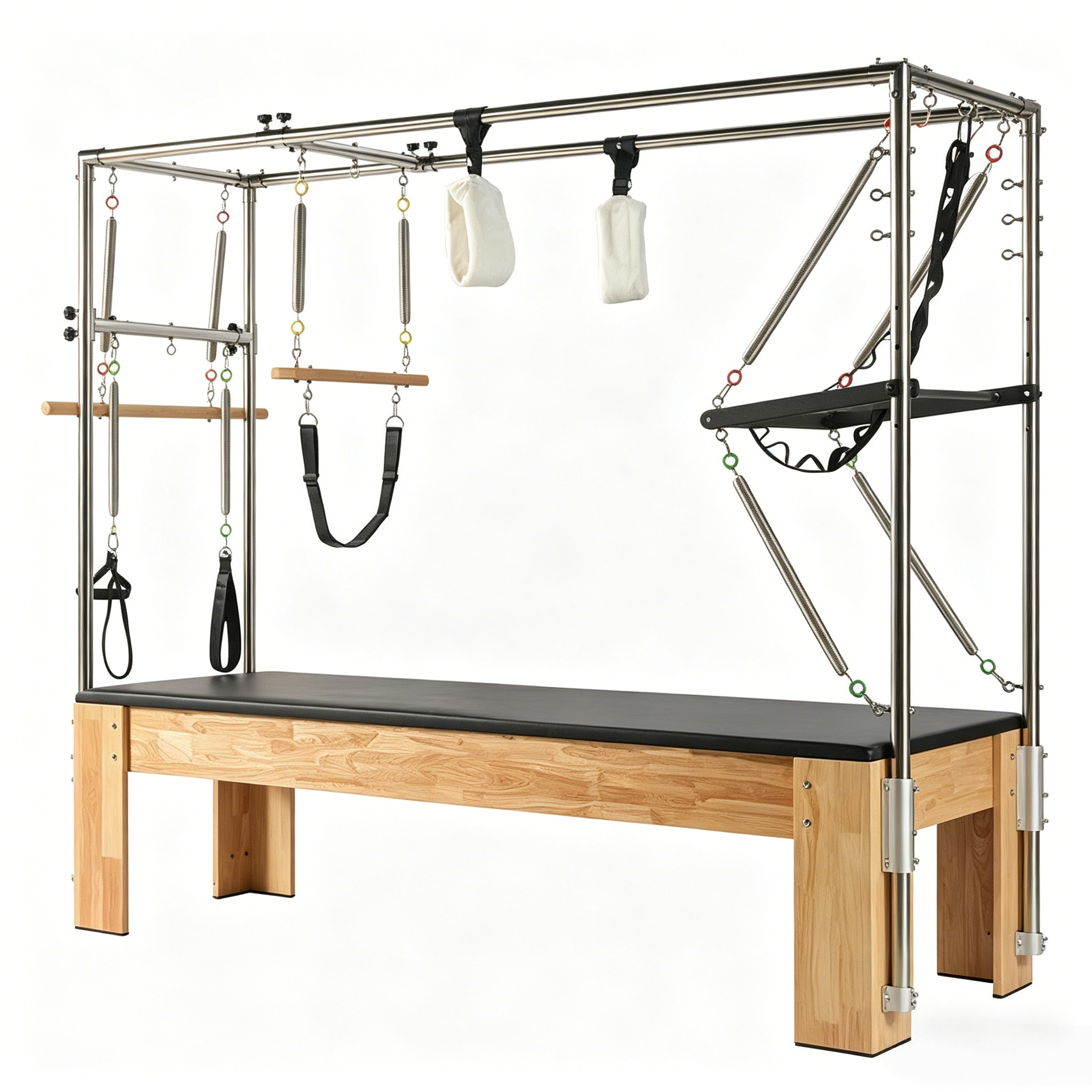 Comprehensive Training Accessories: Equipped with a full set of professional attachments: trapeze bars, foot straps, suspension slings, padded handles, and resistance ropes, enabling unlimited exercise variations (mat work, suspension training, rehabilitation, and mobility drills).